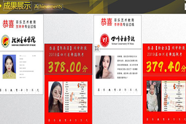 凭借数十年管理经验,教学经验,具备成熟完善的教学系统,并融合国内外先进的教学理念及方法,我校近年来联考过线率均达到95%以上,同时考取了多所名校专业合格证,为中音、北舞、上音、 中戏、川音等艺术名校培养和输送了大批人才。